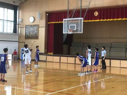 7月18日に男子バスケットボール部が近衛中学校と対戦しました。開始と同時にゴールラッシュを決めた九条中は、前半後半を通して次々と得点を重ね圧勝しました。2回戦は21日になります。ガンバレ九条中。