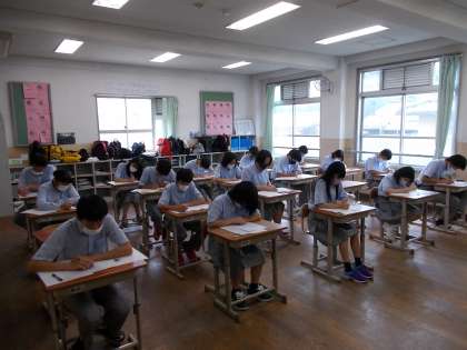 今日は始業式。そして夏休み明けテストです。久しぶりにたくさんの仲間に会えてみんなの笑顔がとても素敵です。まだまだ始業式も放送で行い、全校が集まることができませんが、感染に気をつけながら学校生活を楽しく過ごしましょう。でも、2時間目からは夏休み明けテストです。学習のほうも精一杯取り組んでいきましょう。