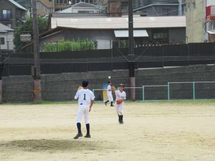 3回の相手チームの攻撃を0点に抑えると、4回の相手チームの攻撃は、お見事、三者凡退に抑えました。さあ、後は得点です。すると三遊間を破るヒットに続き、サードベース直撃のヒットがうまれ、ランナー1,2塁のチャンス!あと一本というところまで迫ります。