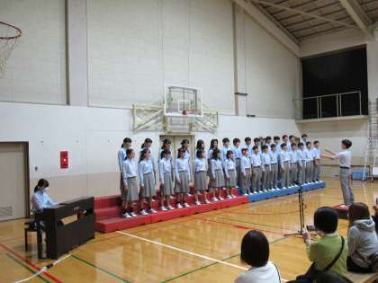 初めての発表の舞台。指揮者の合図でピアノ伴奏が始まり、そして歌声が届きます。みなさんしっかり前を向いて、落ち着いて歌い上げます。立派な中学生としての姿も披露してくれましたね。