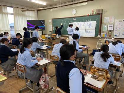 2年生の道徳は「持ち回り道徳」で、いつもの担任の先生とは違う先生が担当されました。2年1組は、秋田のお祭りを題材にした伝統文化についての学習を、2年2組は、電車でのマナーを題材にしたより良い社会についての学習について深めていきました。いろいろな先生からそれぞれの切り口で学ぶ道徳は新鮮ですね。