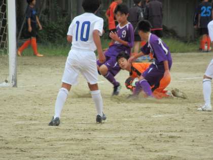 先日、今大会第3戦を迎えたサッカー部は、D中学校相手に集中した戦いを見せてくれました。試合の方は相手の攻撃によく耐え得点を許しません。そんな中、少ないチャンスをものにしてバックスからのシュートが見事に決まり先制点をあげます。その後、相手に追いつかれますが、前半終了間際、コーナーキックのチャンスをものにし2点めをあげ九条中2−1相手校で、前半リードで終えました。すごい!