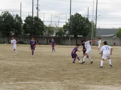 後半は、相手の猛攻を受け、終始我慢の時間帯が続きますが、声を掛け合い、選手交代も含め全員で戦います。最終的には2点を許し逆転されましたが、収穫を実感した選手のみなさんは次への意欲につなげていました。サッカー部も新チームの今後が大いに楽しみです。応援していますよ。