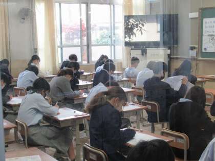 そこには、背筋を伸ばし、しっかり前を向き、テストの開始を静かに待つ1年生の姿を見ることができました。そして、開始の合図とともに、一斉に、問題に取り掛かるみなさん。
