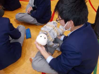 今日の5・6時間目は3年生でいのちの授業がありました。塔南の園児童館さんと協同でいのちの大切さについて、出産や子育てを通して考える取組です。九条中学を卒業され、みんなの先輩でもある助産師さんから、赤ちゃんの誕生とそこにあるお母さんの思いについて教えていただきました。後半では5人のお母さんとお父さんが1歳前後の赤ちゃんといっしょに九条中学校に来てくださり、妊娠・出産・子育てのなかでのいろいろな話しを聞かせていただきました。お母さん方からみんなへのお願いがありました。「今日家に帰って自分が生まれたときのことをぜひお家で聞いてみてください。」