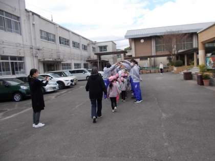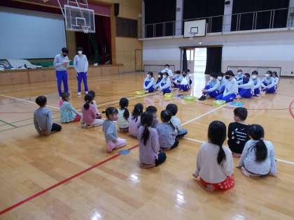 今日は3年生2組が家庭科の保育実習です。今回も学校のすぐ近くのひかり保育園さんから、かわいいお客様が来てくださいました。まずはアーチでお出迎えです。ご挨拶の後、体育館で自己紹介からスタートです。楽しい時を一緒に過ごしましょう。