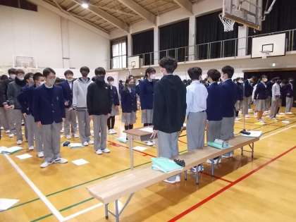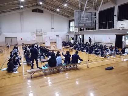 2年生のポスターセッション発表会がありました。先日は3年生の「未来の自分を語る」を聞かせてもらった2年生は、今回1年生に向けて自分たちが発表します。この11月に4日間にわたって取り組んだチャレンジ体験での学びを、今回は来年この学習を行う1年生に伝えます。先輩から後輩へ引き継がれる取組を九条中学校では大切にしています。この1年生たちは、3学期には九条弘道小と九条塔南小の6年生にポスターセッションを行います。ガンバレ九条中生!