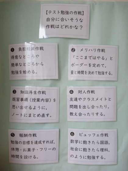 2年生のフロアに掲示してあった「テスト勉強の作戦」を紹介したいと思います。