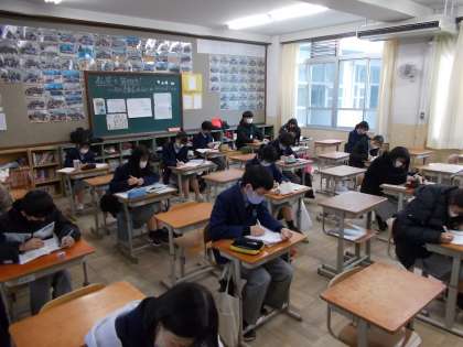 第4回テストがいよいよ21日火曜日から始まります。1・2年生にとってこの1年のしめくくりとなる大切なテストです。今日も朝から、みんな頑張っています。真剣に取り組む仲間と一緒に、この年度最後のテストに立ち向かっていきましょう。ガンバレ九条中生!