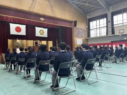 本校の制服に身を包み、一人一人が入場し、しっかり前を向いて話を聞き入る姿は、中学生としての決意を感じさてくれました。本当に素晴らしいです。