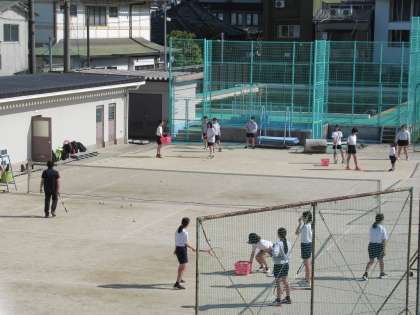 グランドの野球部、ソフトテニス部、サッカー部の練習にも、体操服姿の1年生が入っている様子がうかがえました。なんか活気にあふれていていい感じです。