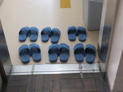九条中学校は「スリッパンのそろえられている学校」です。写真は、1、2年生のフロアの様子です。1年生も、頑張っていますね。2年生は、続けていますね。人は見ているものに心も似てくると言われます。次の人への優しさのバトンとしてつないでいってほしいと思います。