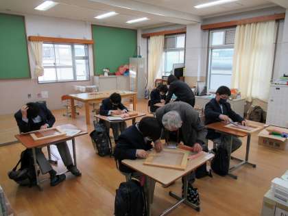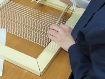 今日、4・5組では、技術の学習で手織りに取り組みました。専用のキットを使って、糸を紡いでいきます。手元を見ていると、実に細かい作業ですが、皆さん集中して取り組んでいました。今から学習の成果が楽しみです。