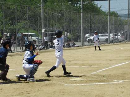 2回の表、見事な2塁打から相手ピッチャーのボークで3塁までランナーを進めると、今度はワイルドピッチで3塁から生還し、すかさず1点を返します。さらに続けてバントでランナーを送り、たたみかけようとする積極的な攻撃をみせます。