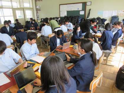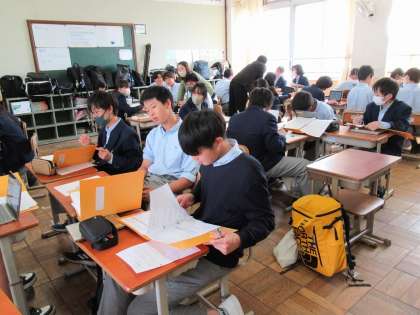 GIGA端末も上手に利用し、インターネットから情報を効率よく収集していました。学習のサブテーマが「未来を体験する」です。自分の未来がイメージできるような、有意義な学習にしてください。