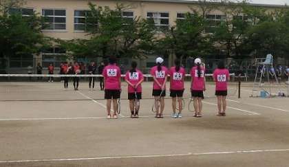 4月30日(日)、本校のソフトテニス部が、春体団体戦に臨みました。前日の個人戦に続いての試合となりましたが、この日は夜から降り出した雨の影響で、実施すら危ぶまれるコンディションとなりました。