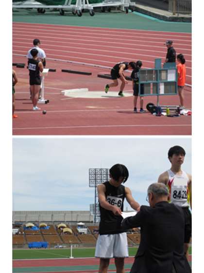 Nさんは、この日、自己ベストを大きく更新する投てきで、見事、予選1位で通過しました。「体の使い方が自分なりにつかめてきた。」と言い、決勝でも更に記録更新をねらいます。結果は、ライバルに予選11m02の記録をわずかに越えられましたが、見事、準優勝を飾りました。おめでとうございます。