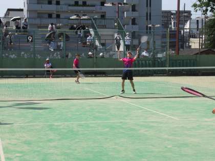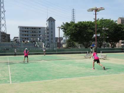 この日、最初の登場となったのは、Y・Sペアです。相手の多彩な攻撃になかなかペースがつかめず、3ゲームを連取される苦しい展開。しかし、ここから粘りをみせ、1ゲームを取り返します。左右に振られても食らいつくYさんのストローク、ネット際で果敢に相手のリターンをとらえるSさんのボレーで対抗します。試合は相手の先行を巻き返しきれず、敗退となりましたが、またこの経験を次につなげてくれることでしょう。