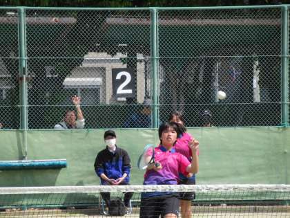 次に登場のN・Oペアも、自分たちのペースで進めようとしますが、相手の力強い攻撃に苦戦します。そして気がつけば0−3に追い込まれます。それでも声を掛け合い、自分たちのプレーを貫きます。その効果が出始め、見事、1ゲームを取り返し流れを引き寄せます。その後のゲームも先行し追い上げますが、最後は相手にかわされ敗退となりました。厳しい場面でもお互い笑顔で励まし合っていた姿が素晴らしかった。