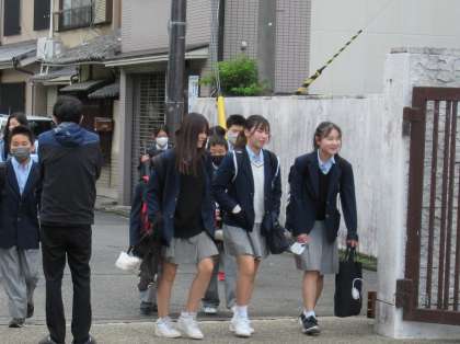ゴールデンウイーク明けの月曜日は、少し肌寒い朝となりました。それでも登校してくる生徒の皆さんは、元気に挨拶をしてくれます。どのように休日を過ごしたのでしょうか?気温の変動の大きいこの時期、体調に注意して過ごしてほしいと思います。