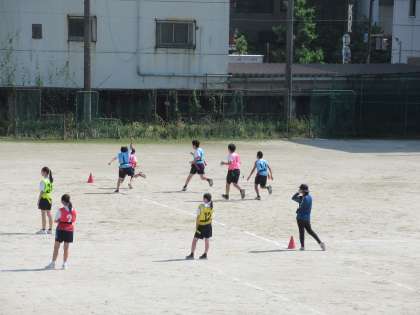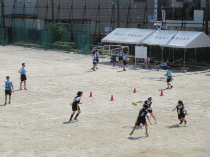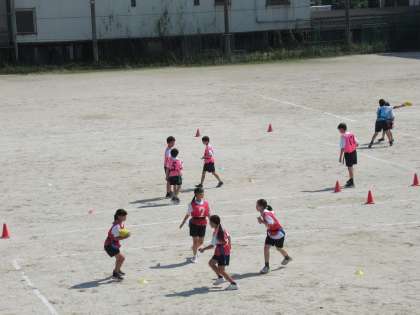 1、2年生も、体育の授業でタグラグビーに取り組んでいます。