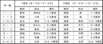 3限目:体育館において、進路保護者会、PTA総会を行います。