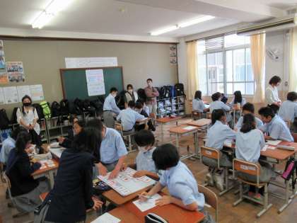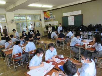 また道徳では、桃太郎のお話に、「鬼太郎」という新しいキャラクターを加えてハッピーエンドのストーリーを考える学習に取り組んでいました。