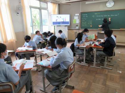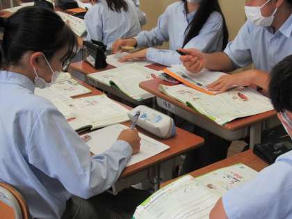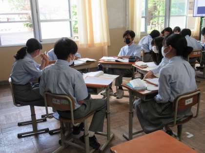 英語の授業は、グループワークの形で進められていました。お互いに考えを交流したり教え合ったりしながらみんなで理解を深めていましたね。
