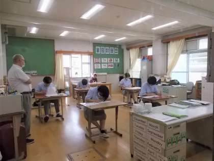早速、テストに向かうみなさんの様子を..と、各学年の教室を覗くと、そこはピンと張り詰めた雰囲気の中でカリカリと文字を書く音だけが..とても写真を撮るためだけに軽々しく扉を開けられない緊張感に満ちた教室でした。