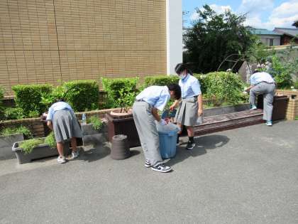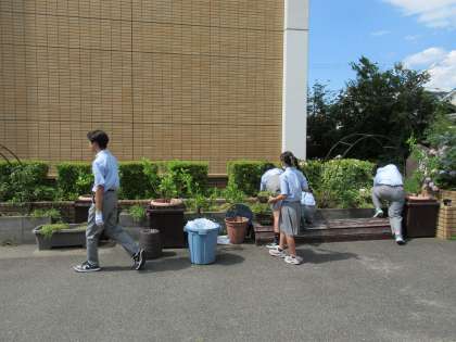 中庭では、園芸部の皆さんが、新しい花植えに備え、花壇の整備に努めてくれていました。また、季節のお花で九条中学校を彩ってくれるのですね。ありがとう!