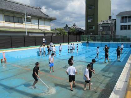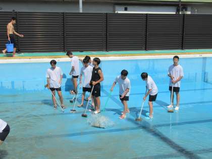 今日、テスト後の午後からはプール清掃が行われ、たくさんの生徒の皆さんが力を貸してくれました。