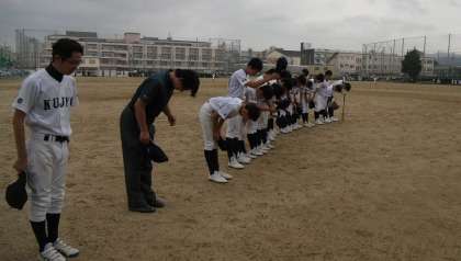 試合に敗れはしましたが、九条中ナインの気持ちが全面に出せた本当に素晴らしい試合でした。その力を引き出してくれた相手のN中学への感謝の気持ちをみんなは『礼』でしっかり伝える事が出来ていましたね。そして応援して下さった保護者の方々へも感謝の気持ちを伝えることが出来ました。野球部のみなさん本当にお疲れ様でした。..次回が楽しみです!
