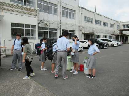 エコキャッップ回収運動は、ポリオワクチンの支援につなげることを目的として実施しています。この活動の意味も、その都度確認しながら、今日も、協力する生徒の皆さんの様子が見られます。ありがとう。そして、生徒会本部の皆さん、朝早くからご苦労様でした。