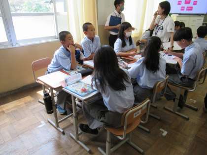 そして、呼吸器や循環器の発達に関連付けて「持久力を向上させるにはどのような運動をすればよいのか?」という問いに、個人で考え、次にグループで交流して、最後は全体で発表し合いました。