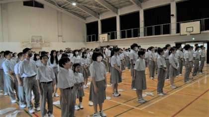 本日、全校生徒が体育館に集い、1学期の終業式を行うことができました。