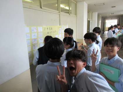 2年社会(都道府県調べ)、3年社会(税の作文・テーマ学習)、2年理科(元素記号カード)