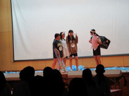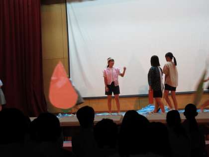 大学訪問の中学生が、演劇部の舞台に張り込んでいきます。