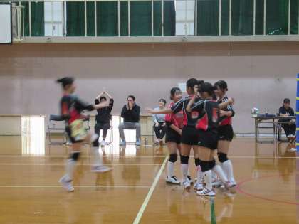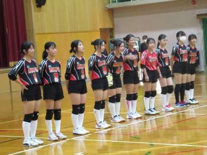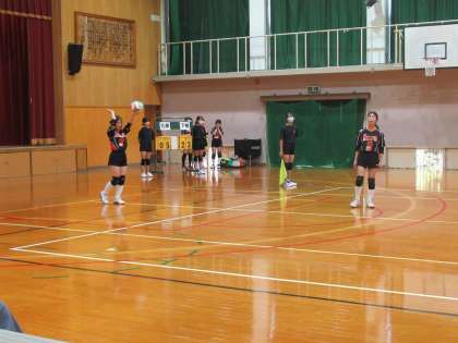 九条中もサーブやスパイクを決め、対抗しますが、初めの点差がきき、なかなか追い付けません。健闘しましたが、押しきられ、第2セットも落とし、セットカウント0−2で敗退となりました。