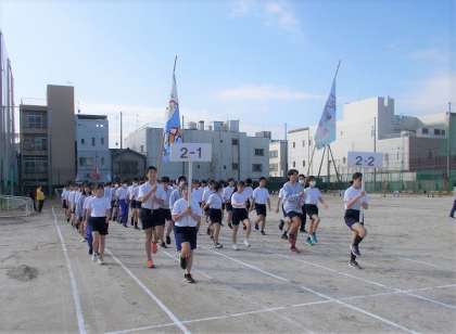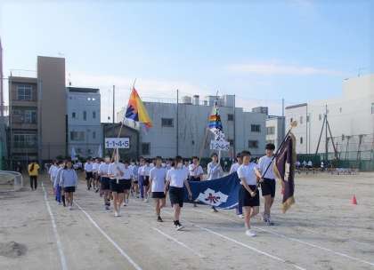 明後日の10/19(木)の本番に備え、本日1限目は全校練習において、全体の動きの最終確認を行いました。1限目からもうすでに少し暑いくらいのグラウンドでしたが『1・2!1・2!..』みんな元気ハツラツとした入場行進ができました。