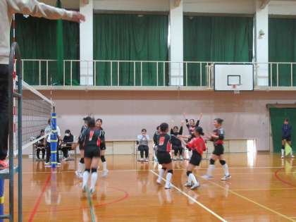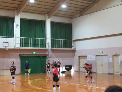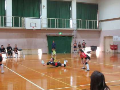 連戦の疲れも見せず、思い切ったプレーを連発する九条中です。Yさんの飛び込んでのナイスレシーブを何としてもつなげようとするみんな、ネット際の攻防も集中してボールに食らいついていくみんな、1つ1つのプレーに目が離せません。