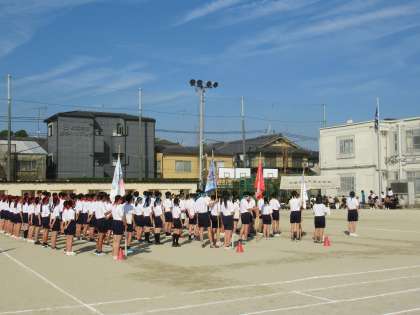 選手が整列したところで、みんなで校歌を斉唱しながら生徒会旗の掲揚です。