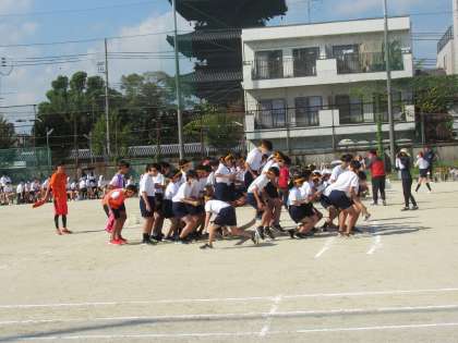 3名ほどで竹を抱えて走りますが、回転コースの攻略が皆さんできていてすごい。竹を足元に通して、戻りは頭上を通してバトンタッチです。