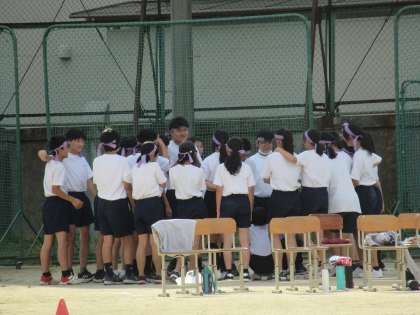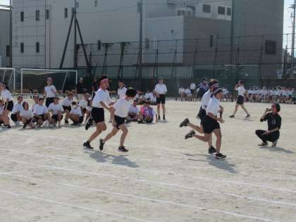 いよいよ最後の競技を迎えます。最後の競技は「学級対抗リレー」です。これは学年ごとの学級対抗となりますが、クラスみんなでバトンをつなぐ、いわゆる「全員リレー」です。