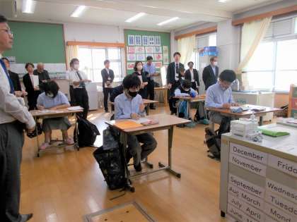4・5組は5限目、下京・南・東山支部の授業研究が行われ、大勢の先生方が授業参観に来られました。みんな序盤はさすがに緊張が隠せない表情でしたが、先生の声に導かれて、自然に声が出始めると徐々にいつもの4・5組の授業になりましたね。あれだけ大勢の先生方の前でもしっかり頑張り切ったみんなは..アッパレ!大変よくできました。