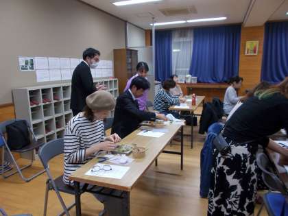 そろそろ仕上の段階..時間を忘れて皆さん黙々と..そんな中、若手教員の眼差しを背に校長先生も奮闘中でした。