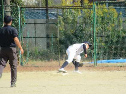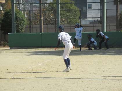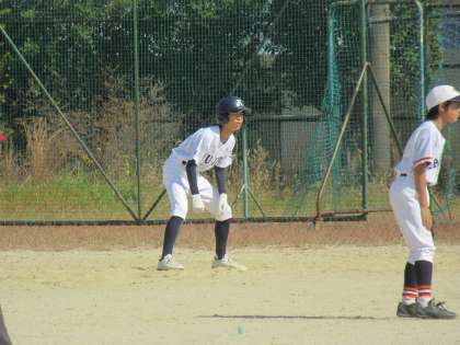 3回表の相手の攻撃を、見事、三者凡退に抑え、その裏の攻撃へ。ランナーをサードに進め、2番Sさんが華麗にセーフティスクイズを決め1点追加です。続くバッターSさんも内野安打を放ち、更に1点と、たたみかける攻撃で九条中6点リードとなります。すごいぞ!