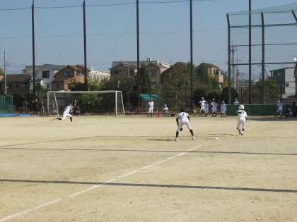 最終回のマウンドに上がったのはYさんです。しかし、さすがK中学もやすやすとは引き下がりません。ツーアウトから3塁、1塁のチャンスをつくると3塁打を放ち2者を迎え入れます。更に九条中の守りにミスが出て1点追加され、点差を2点にまで詰められます。その後も3塁、2塁となり一打同点の大ピンチとなりました。