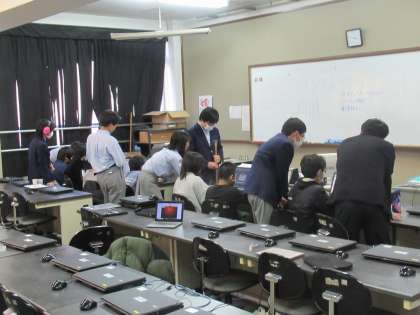 コンピュータ部の体験では、実際に、コンピュータ室でパソコン操作を楽しみました。また、吹奏楽部は、楽器の体験とともに、先輩の演奏も鑑賞しました。それぞれ、先輩たちも、優しく丁寧に教えてくれていましたね。