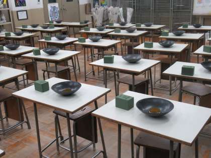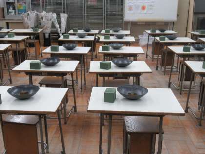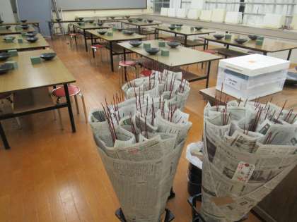 明日の2年華道体験を前に、2年の先生方が会場準備をしてくださったようです。きちんとそろえられた花器やオアシス。明日のお花も届いています。先生方の優しい気持ちが伝わってきます。その気持ちに応えて、一生懸命に取り組む2年生の皆さんの姿が想像されます。もうすでに、美しい花が生けられたようにも感じました。明日もいいところ見せてよ、2年生の皆さん!