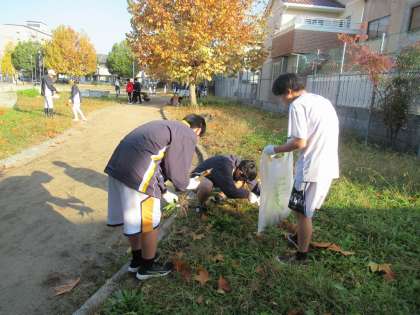 今朝(12/10)、南区一斉清掃に本校から野球部と男子バスケットボール部の皆さんが参加してくれました。